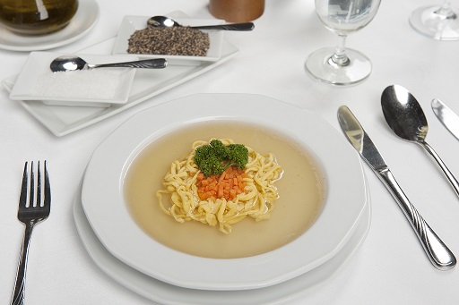 Warzywa obrać, opłukać. Kurę umyć. Podzielić na 4 kawałki. Do gotującej się wody dodać mięso i warzywa. Gotować na małym ogniu, bez przykrycia. Odcedzić, usunąć nadmiar tłuszczu. Przygotować kluski z grysiku – wymieszać dobrze, dodać trochę soli, lać na gotującą wodę, przelać zimną wodą, dodać do rosołu.