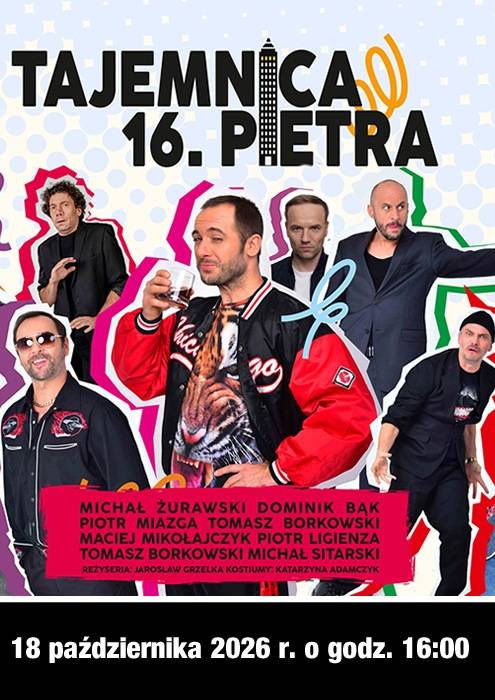 Zapraszamy do Teatr im. Adama Mickiewicza w Cieszynie na spektakl "Tajemnica 16. piętra", który odbędzie się 18 października 2026 o godzinie 16:00.