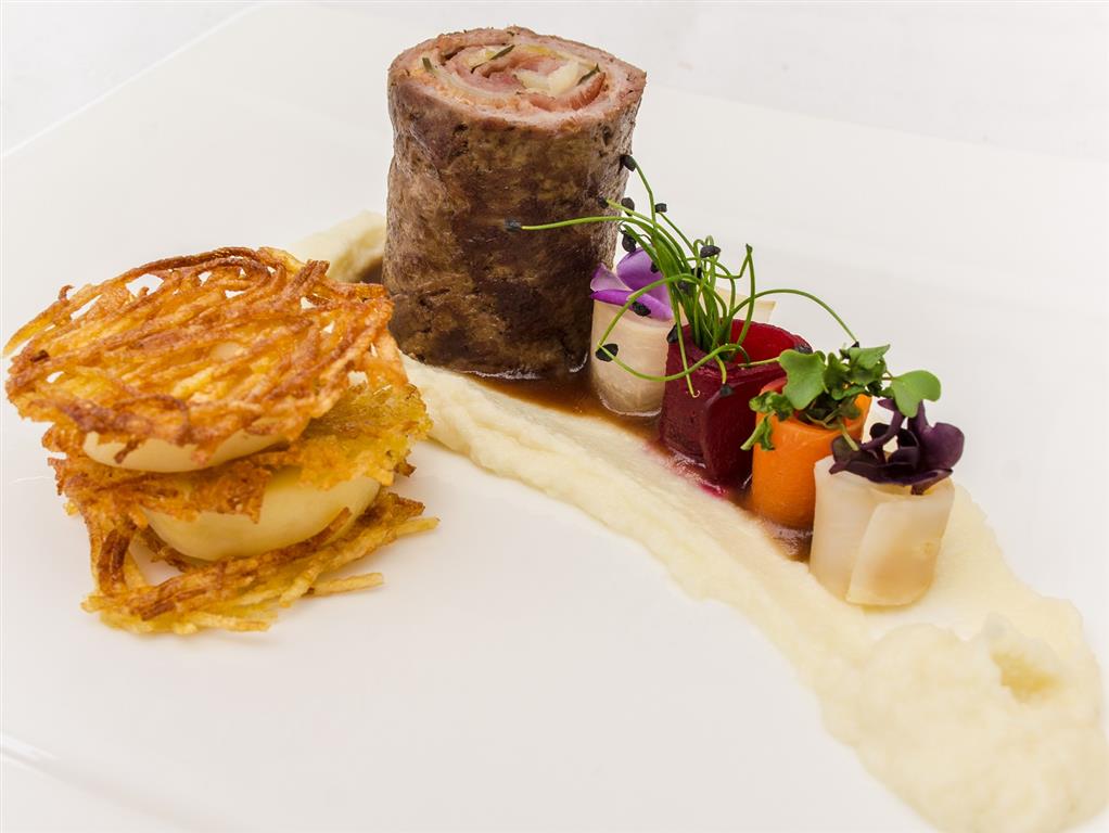Mięso pokroić w plastry, rozbić, przyprawić solą i pieprzem, posmarować musztardą. Na mięsie rozłożyć równomiernie ogórki pokrojone w paski i boczek wędzony oraz pokrojoną w cząstki cebulę. Plastry mięsa zwinąć, uformować rolady, obwiązać białą nitką, oprószyć mąką i smażyć na rozgrzanym smalcu na patelni ze wszystkich stron. Przełożyć do rondla, podlać tłuszczem ze smażenia i ciepłą wodą, dodać listek laurowy i ziele angielskie, dusić do miękkości. W czasie duszenia rolady obracać i podlewać, a gdy mięso będzie miękkie, wyjąć i sporządzić sos.