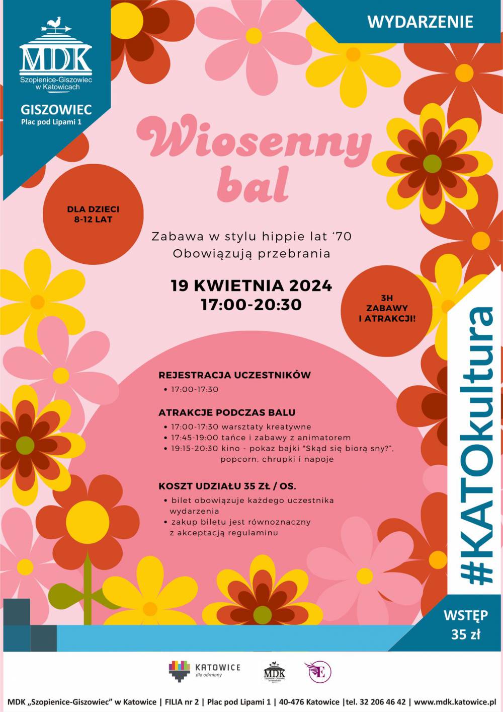 Wiosenny Bal to ponad 3 godziny zabawy dla dzieci w wieku 8-12 lat! Bal odbędzie się 19 kwietnia MDK przy Placu pod Lipami 1 w Katowicach.