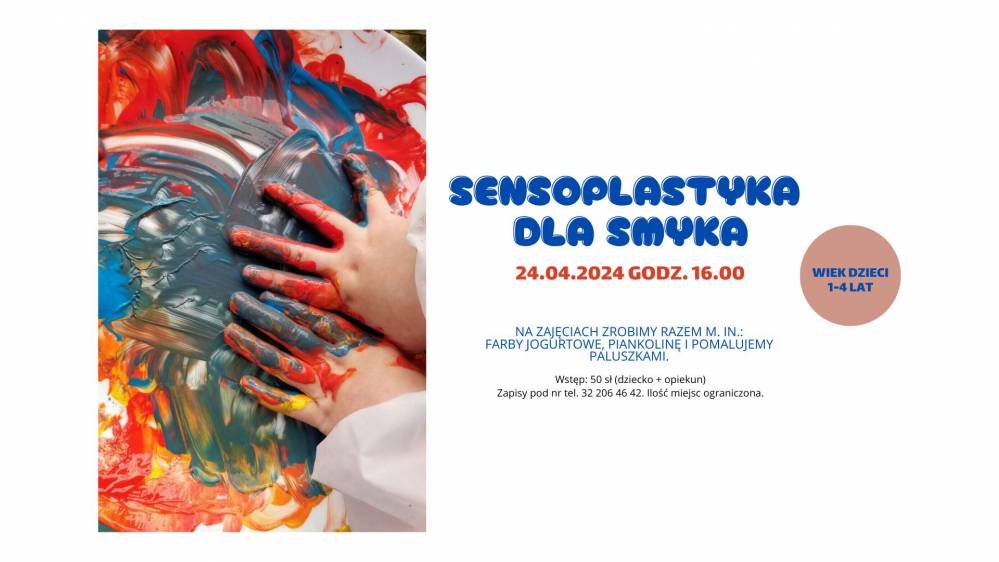Wydarzenie dla maluchów w Miejskim Domu Kultury "Szopienice - Giszowiec" w Katowicach. Sensoplastyka dla Smyka to zajęcia rozwojowe dla dzieci w wieku od 1 do 4 lat.