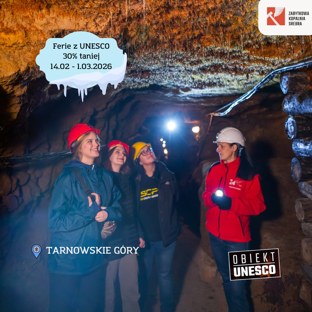 Od 14 lutego do 1 marca zabytki UNESCO można zwiedzać z przewodnikiem aż 30% taniej! Tegoroczne ferie zimowe w województwie śląskim to doskonała okazja, by odkryć jedyne w woj. śląskim obiekty, wpisane na Listę Światowego Dziedzictwa UNESCO - Zabytkową Kopalnię Srebra i Sztolnię Czarnego Pstrąga.