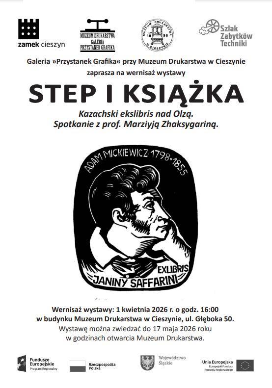 Muzeum Drukarstwa w Cieszynie zaprasza na wystawę  twórczości Mәrziyi Zhaksygariny "Step i książka". Wernisaż wystawy odbędzie się 01 kwietnia 2026r o godzinie 16:00, wystawę będzie można zwiedzać do 17 maja 2026r.