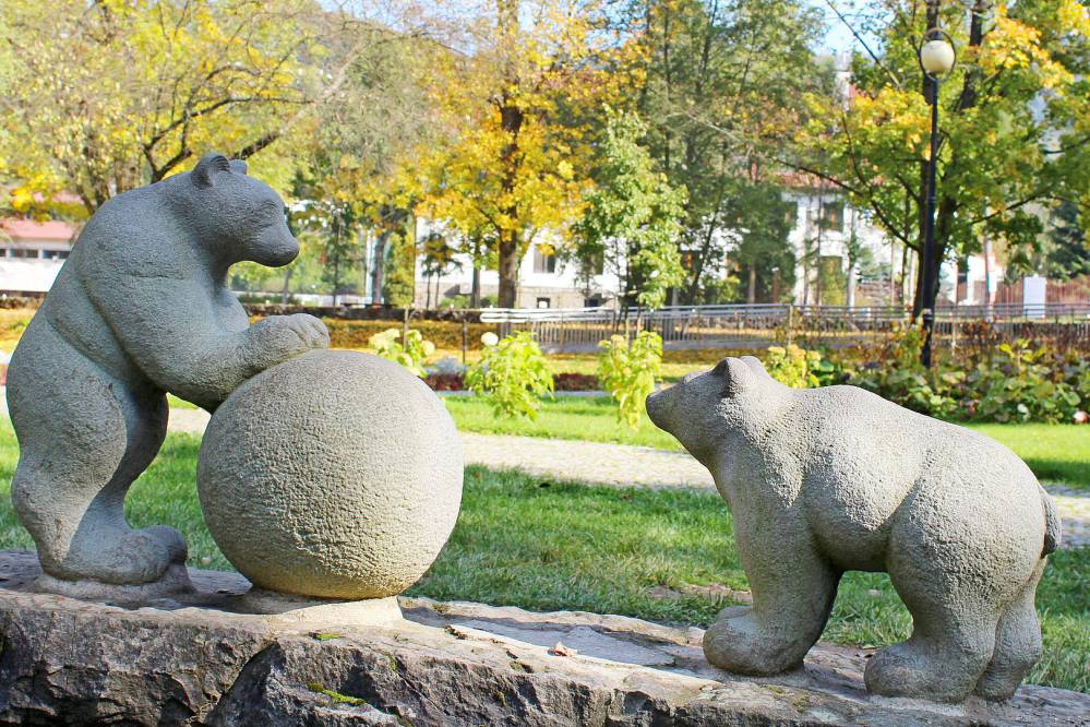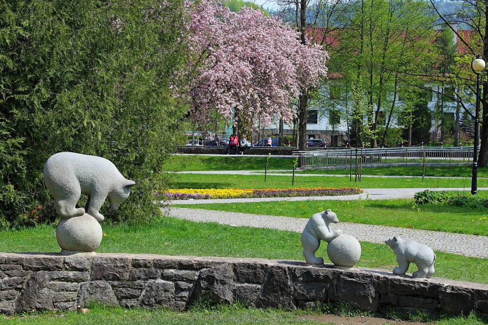Figury wiślańskich niedźwiadków wykonane zostały na początku lat 60. ubiegłego wieku przez miejscowego artystę amatora Jerzego Szarca. Kamienne misie od samego początku są odwiedzane przez kolejne pokolenia, a zdjęcie z nimi jest obowiązkową pamiątką z pobytu w Wiśle.